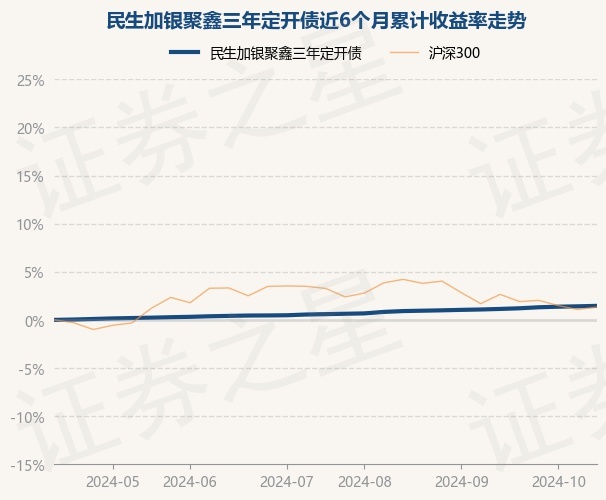 证券之星消息,10月25日,民生加银聚鑫三年定开债最新单位净值为1.0503元,累计净值为1.1338元,较前一交易日上涨0.05%。历史数据显示该基金近1个月上涨0.32%,近3个月上涨0.85%,近6个月上涨1.46%,近1年上涨2.39%。该基金近6个月的累计收益率走势如下图: