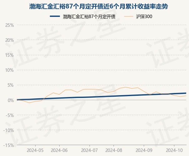 证券之星消息,10月25日,渤海汇金汇裕87个月定开债最新单位净值为1.048元,累计净值为1.1635元,较前一交易日上涨0.09%。历史数据显示该基金近1个月上涨0.4%,近3个月上涨1.14%,近6个月上涨2.21%,近1年上涨4.25%。该基金近6个月的累计收益率走势如下图: