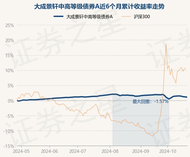 证券之星消息,10月28日,大成景轩中高等级债券A最新单位净值为1.0919元,累计净值为1.1369元,较前一交易日下跌0.07%。历史数据显示该基金近1个月下跌0.49%,近3个月下跌0.6%,近6个月上涨1.08%,近1年上涨4.34%。该基金近6个月的累计收益率走势如下图: