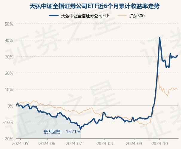 证券之星消息,10月28日,天弘中证全指证券公司ETF最新单位净值为1.0414元,累计净值为1.0414元,较前一交易日上涨0.11%。历史数据显示该基金近1个月上涨12.4%,近3个月上涨42.46%,近6个月上涨30.44%,近1年上涨20.69%。该基金近6个月的累计收益率走势如下图: