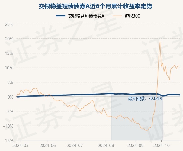 证券之星消息,10月28日,交银稳益短债债券A最新单位净值为1.0228元,累计净值为1.0498元,较前一交易日下跌0.02%。历史数据显示该基金近1个月下跌0.24%,近3个月下跌0.3%,近6个月上涨0.59%,近1年上涨2.56%。该基金近6个月的累计收益率走势如下图:
