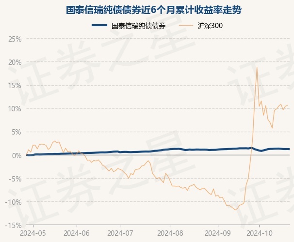 证券之星消息,10月28日,国泰信瑞纯债债券最新单位净值为1.0572元,累计净值为1.0652元,较前一交易日下跌0.02%。历史数据显示该基金近1个月上涨0.03%,近3个月上涨0.24%,近6个月上涨1.23%,近1年上涨4.12%。该基金近6个月的累计收益率走势如下图: