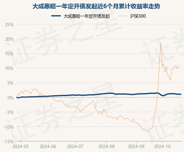 证券之星消息,10月28日,大成惠昭一年定开债发起最新单位净值为1.0381元,累计净值为1.0581元,较前一交易日下跌0.01%。历史数据显示该基金近1个月下跌0.13%,近3个月下跌0.09%,近6个月上涨1.02%,近1年上涨3.69%。该基金近6个月的累计收益率走势如下图: