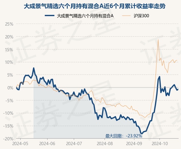 证券之星消息,10月28日,大成景气精选六个月持有混合A最新单位净值为0.8505元,累计净值为0.8505元,较前一交易日上涨0.32%。历史数据显示该基金近1个月上涨1.92%,近3个月上涨11.44%,近6个月下跌0.76%,近1年上涨9.71%。该基金近6个月的累计收益率走势如下图: