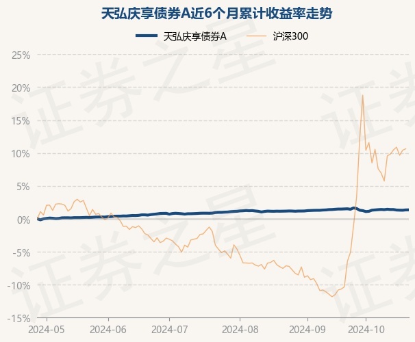 证券之星消息,10月28日,天弘庆享债券A最新单位净值为1.0097元,累计净值为1.1059元,较前一交易日上涨0.01%。历史数据显示该基金近1个月上涨0.06%,近3个月上涨0.33%,近6个月上涨1.36%,近1年上涨3.69%。该基金近6个月的累计收益率走势如下图:
