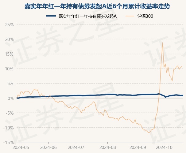 证券之星消息,10月28日,嘉实年年红一年持有债券发起A最新单位净值为1.0611元,累计净值为1.0772元,较前一交易日上涨0.0%。历史数据显示该基金近1个月下跌0.23%,近3个月下跌0.17%,近6个月上涨0.86%,近1年上涨3.4%。该基金近6个月的累计收益率走势如下图:
