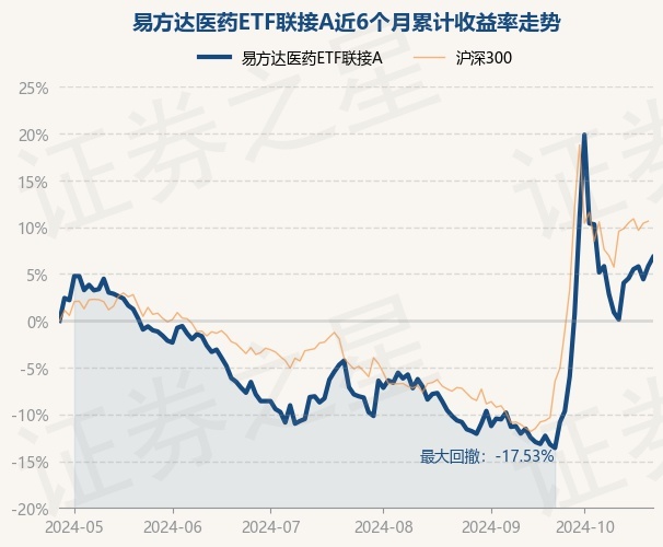 证券之星消息,10月28日,易方达医药ETF联接A最新单位净值为0.9428元,累计净值为0.9428元,较前一交易日上涨0.92%。历史数据显示该基金近1个月上涨6.04%,近3个月上涨16.35%,近6个月上涨6.8%,近1年下跌9.29%。该基金近6个月的累计收益率走势如下图: