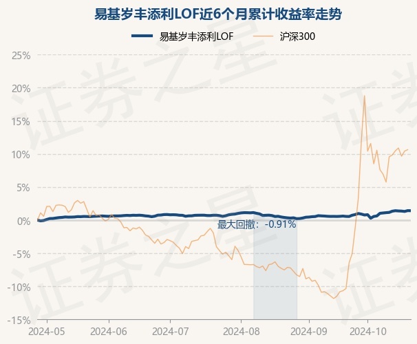 证券之星消息,10月28日,易基岁丰添利LOF最新单位净值为1.66元,累计净值为2.571元,较前一交易日下跌0.01%。历史数据显示该基金近1个月上涨0.51%,近3个月上涨0.61%,近6个月上涨1.42%,近1年上涨4.71%。该基金近6个月的累计收益率走势如下图: