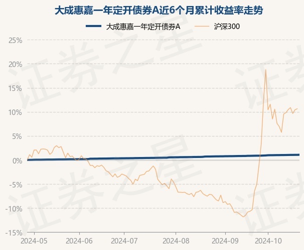 证券之星消息,10月28日,大成惠嘉一年定开债券A最新单位净值为1.0089元,累计净值为1.1217元,较前一交易日上涨0.02%。历史数据显示该基金近1个月上涨0.16%,近3个月上涨0.61%,近6个月上涨1.08%,近1年上涨2.2%。该基金近6个月的累计收益率走势如下图: