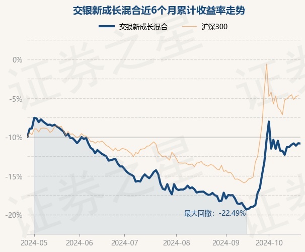 证券之星消息,10月28日,交银新成长混合最新单位净值为3.212元,累计净值为3.612元,较前一交易日下跌0.06%。历史数据显示该基金近1个月上涨5.07%,近3个月上涨11.92%,近6个月下跌1.68%,近1年下跌2.01%。该基金近6个月的累计收益率走势如下图: