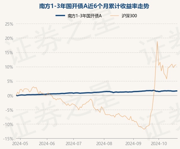 证券之星消息,10月28日,南方1-3年国开债A最新单位净值为1.0291元,累计净值为1.1891元,较前一交易日上涨0.02%。历史数据显示该基金近1个月上涨0.12%,近3个月上涨0.47%,近6个月上涨1.55%,近1年上涨3.75%。该基金近6个月的累计收益率走势如下图: