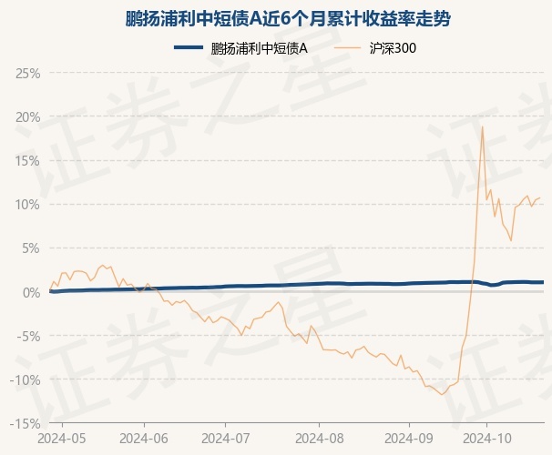 证券之星消息,10月28日,鹏扬浦利中短债A最新单位净值为1.0596元,累计净值为1.1596元,较前一交易日上涨0.01%。历史数据显示该基金近1个月上涨0.0%,近3个月上涨0.25%,近6个月上涨1.01%,近1年上涨3.4%。该基金近6个月的累计收益率走势如下图: