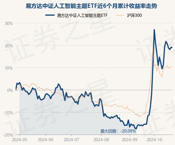 证券之星消息,10月28日,易方达中证人工智能主题ETF最新单位净值为0.879元,累计净值为0.879元,较前一交易日下跌0.15%。历史数据显示该基金近1个月上涨20.48%,近3个月上涨27.39%,近6个月上涨18.96%,近1年上涨22.05%。该基金近6个月的累计收益率走势如下图:
