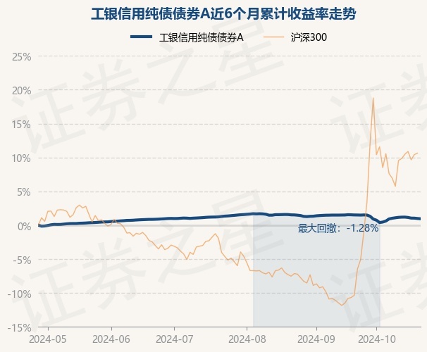 证券之星消息,10月28日,工银信用纯债债券A最新单位净值为1.4517元,累计净值为1.4927元,较前一交易日下跌0.04%。历史数据显示该基金近1个月下跌0.36%,近3个月下跌0.49%,近6个月上涨0.95%,近1年上涨4.48%。该基金近6个月的累计收益率走势如下图: