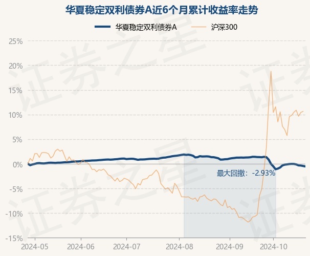 证券之星消息,10月28日,华夏稳定双利债券A最新单位净值为1.0318元,累计净值为1.2995元,较前一交易日下跌0.09%。历史数据显示该基金近1个月下跌1.37%,近3个月下跌1.95%,近6个月下跌0.53%,近1年上涨3.4%。该基金近6个月的累计收益率走势如下图: