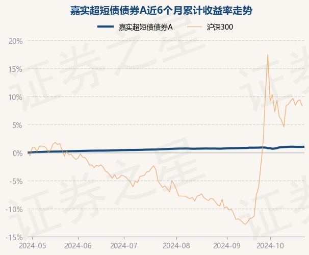 证券之星消息,10月29日,嘉实超短债债券A最新单位净值为1.0514元,累计净值为1.1431元,较前一交易日上涨0.01%。历史数据显示该基金近1个月上涨0.14%,近3个月上涨0.37%,近6个月上涨1.04%,近1年上涨2.69%。该基金近6个月的累计收益率走势如下图: