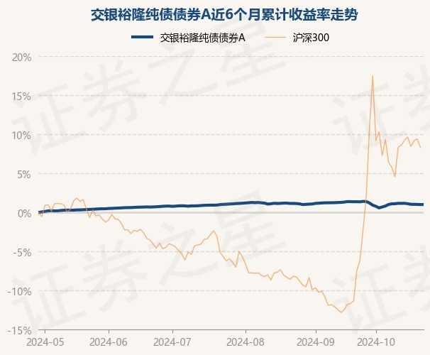 证券之星消息,10月29日,交银裕隆纯债债券A最新单位净值为1.375元,累计净值为1.404元,较前一交易日上涨0.01%。历史数据显示该基金近1个月下跌0.19%,近3个月下跌0.12%,近6个月上涨1.02%,近1年上涨3.8%。该基金近6个月的累计收益率走势如下图: