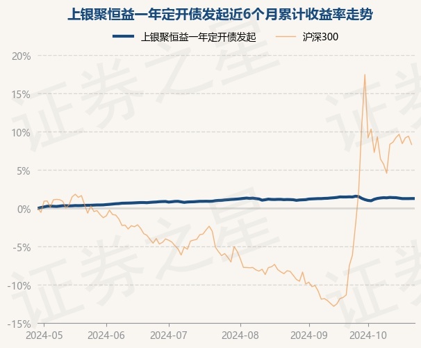 证券之星消息,10月29日,上银聚恒益一年定开债发起最新单位净值为1.007元,累计净值为1.0632元,较前一交易日上涨0.0%。历史数据显示该基金近1个月上涨0.0%,近3个月上涨0.14%,近6个月上涨1.3%,近1年上涨3.22%。该基金近6个月的累计收益率走势如下图: