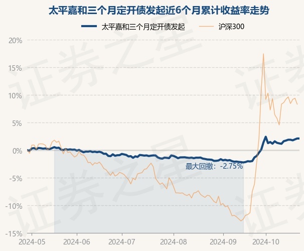 证券之星消息,10月29日,太平嘉和三个月定开债发起最新单位净值为1.0398元,累计净值为1.0398元,较前一交易日上涨0.0%。历史数据显示该基金近1个月上涨1.87%,近3个月上涨3.4%,近6个月上涨1.98%,近1年上涨4.18%。该基金近6个月的累计收益率走势如下图: