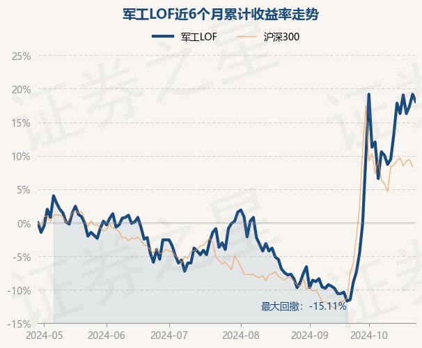 证券之星消息,10月29日,军工LOF最新单位净值为1.059元,累计净值为1.737元,较前一交易日下跌0.94%。历史数据显示该基金近1个月上涨18.19%,近3个月上涨18.19%,近6个月上涨18.06%,近1年上涨10.89%。该基金近6个月的累计收益率走势如下图: