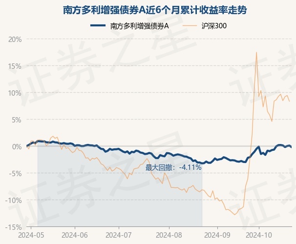 证券之星消息,10月29日,南方多利增强债券A最新单位净值为1.1382元,累计净值为1.9551元,较前一交易日下跌0.28%。历史数据显示该基金近1个月上涨0.89%,近3个月上涨1.67%,近6个月下跌0.19%,近1年上涨1.86%。该基金近6个月的累计收益率走势如下图: