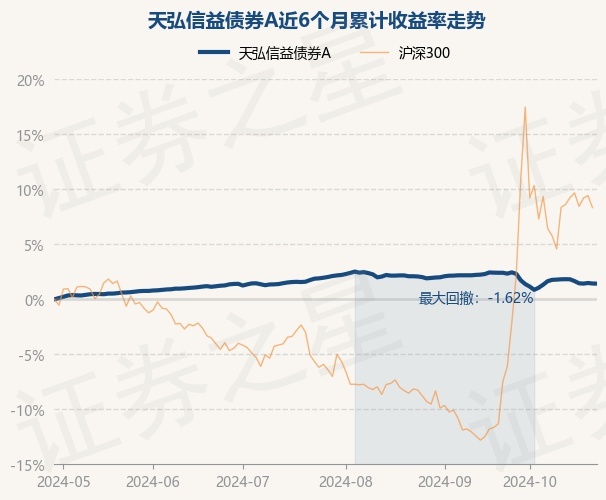 证券之星消息,10月29日,天弘信益债券A最新单位净值为1.0588元,累计净值为1.1536元,较前一交易日下跌0.01%。历史数据显示该基金近1个月下跌0.3%,近3个月下跌0.68%,近6个月上涨1.42%,近1年上涨3.9%。该基金近6个月的累计收益率走势如下图: