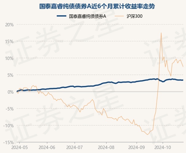 证券之星消息,10月29日,国泰嘉睿纯债债券A最新单位净值为1.0795元,累计净值为1.2371元,较前一交易日上涨0.04%。历史数据显示该基金近1个月上涨0.16%,近3个月上涨1.01%,近6个月上涨3.43%,近1年上涨7.52%。该基金近6个月的累计收益率走势如下图: