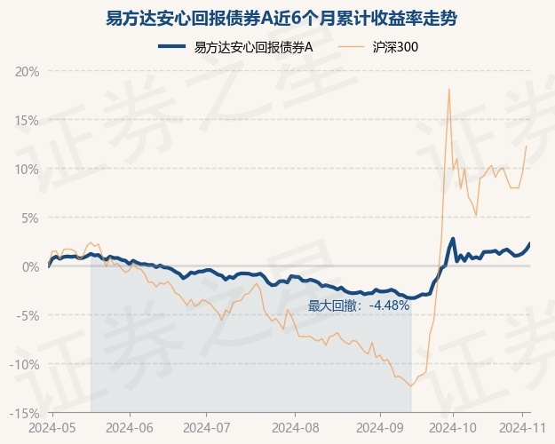 证券之星消息,10月30日,易方达安心回报债券A最新单位净值为1.9483元,累计净值为3.0473元,较前一交易日下跌0.34%。历史数据显示该基金近1个月下跌0.77%,近3个月上涨2.78%,近6个月上涨1.02%,近1年上涨4.29%。该基金近6个月的累计收益率走势如下图: