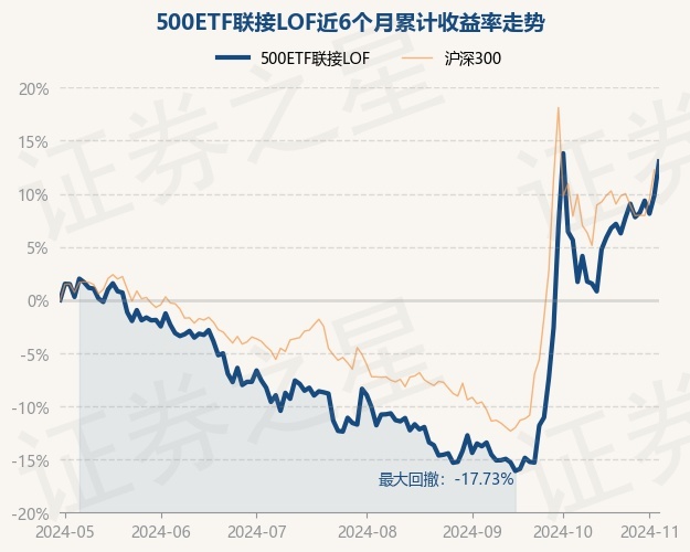 证券之星消息,10月30日,500ETF联接LOF最新单位净值为1.6329元,累计净值为1.7329元,较前一交易日上涨0.41%。历史数据显示该基金近1个月上涨1.27%,近3个月上涨22.61%,近6个月上涨8.24%,近1年上涨6.2%。该基金近6个月的累计收益率走势如下图: