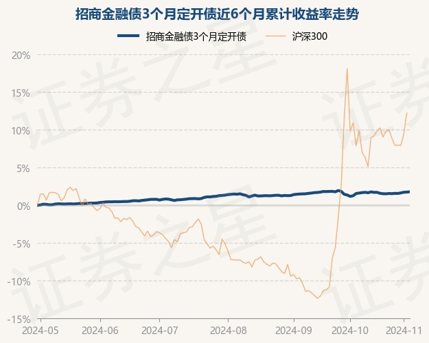证券之星消息,10月31日,招商金融债3个月定开债最新单位净值为1.0334元,累计净值为1.1297元,较前一交易日上涨0.07%。历史数据显示该基金近1个月上涨0.27%,近3个月上涨0.29%,近6个月上涨1.64%,近1年上涨4.19%。该基金近6个月的累计收益率走势如下图: