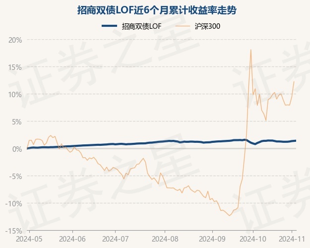 证券之星消息,10月31日,招商双债LOF最新单位净值为1.5659元,累计净值为1.7049元,较前一交易日上涨0.04%。历史数据显示该基金近1个月上涨0.22%,近3个月上涨0.01%,近6个月上涨1.27%,近1年上涨4.48%。该基金近6个月的累计收益率走势如下图: