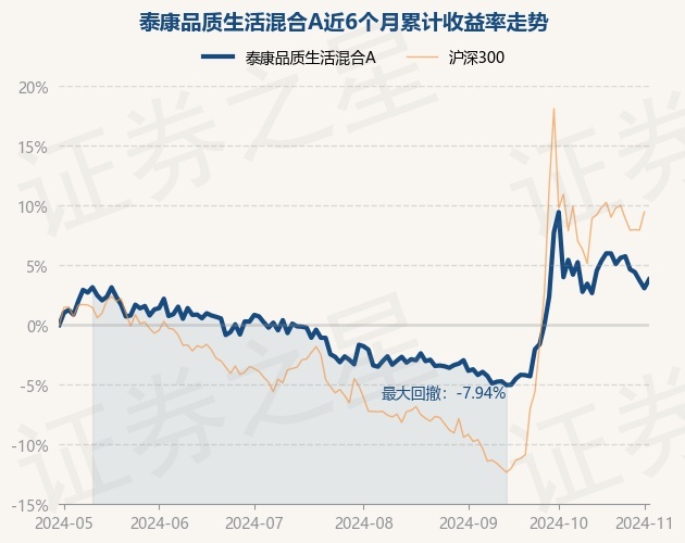 证券之星消息,11月1日,泰康品质生活混合A最新单位净值为1.1219元,累计净值为1.1219元,较前一交易日上涨0.0%。历史数据显示该基金近1个月下跌4.34%,近3个月上涨4.95%,近6个月上涨3.08%,近1年上涨9.8%。该基金近6个月的累计收益率走势如下图: