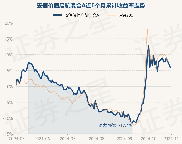 证券之星消息,11月1日,安信价值启航混合A最新单位净值为1.1809元,累计净值为1.1809元,较前一交易日上涨0.0%。历史数据显示该基金近1个月下跌3.13%,近3个月上涨13.52%,近6个月上涨6.49%,近1年上涨16.68%。该基金近6个月的累计收益率走势如下图: