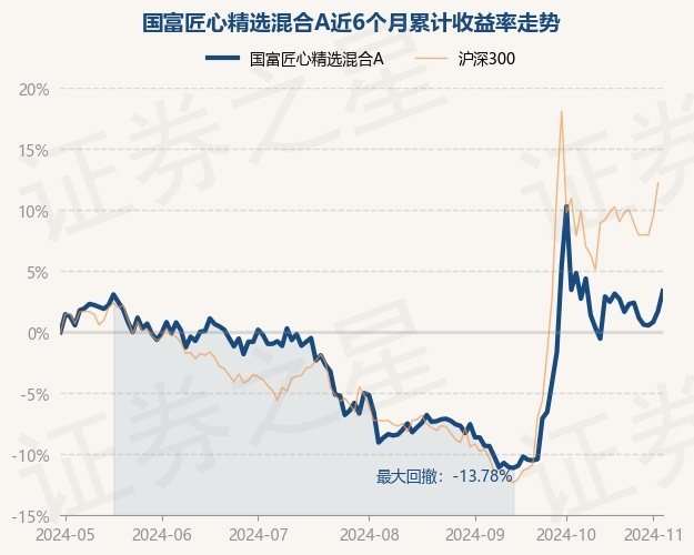 证券之星消息,11月1日,国富匠心精选混合A最新单位净值为0.9071元,累计净值为0.9071元,较前一交易日上涨0.28%。历史数据显示该基金近1个月下跌4.42%,近3个月上涨6.3%,近6个月上涨0.83%,近1年上涨7.5%。该基金近6个月的累计收益率走势如下图: