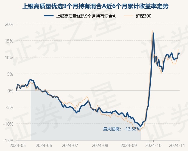 证券之星消息,11月1日,上银高质量优选9个月持有混合A最新单位净值为0.656元,累计净值为0.656元,较前一交易日上涨0.0%。历史数据显示该基金近1个月下跌2.34%,近3个月上涨15.84%,近6个月上涨9.5%,近1年上涨10.38%。该基金近6个月的累计收益率走势如下图: