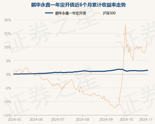 证券之星消息,11月1日,鹏华永鑫一年定开债最新单位净值为1.0215元,累计净值为1.0625元,较前一交易日上涨0.05%。历史数据显示该基金近1个月上涨0.07%,近3个月上涨0.22%,近6个月上涨1.39%,近1年上涨3.65%。该基金近6个月的累计收益率走势如下图: