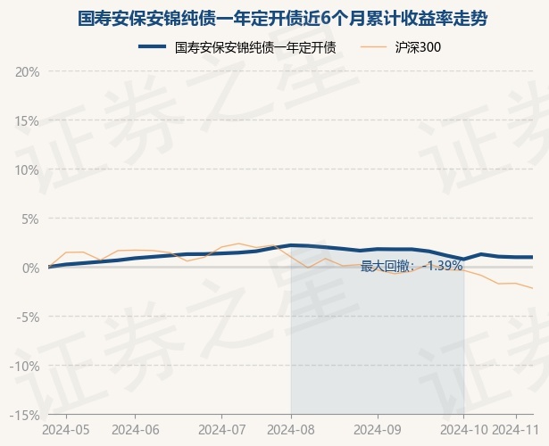 证券之星消息,11月1日,国寿安保安锦纯债一年定开债最新单位净值为1.0168元,累计净值为1.1058元,较前一交易日上涨0.0%。历史数据显示该基金近1个月下跌0.17%,近3个月下跌0.93%,近6个月上涨0.95%,近1年上涨4.2%。该基金近6个月的累计收益率走势如下图: