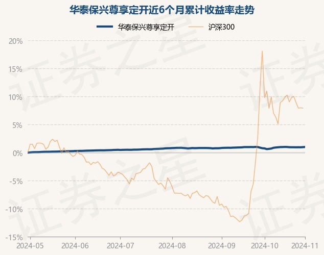 证券之星消息,11月1日,华泰保兴尊享定开最新单位净值为1.1235元,累计净值为1.1715元,较前一交易日上涨0.03%。历史数据显示该基金近1个月上涨0.21%,近3个月上涨0.19%,近6个月上涨1.01%,近1年上涨4.52%。该基金近6个月的累计收益率走势如下图: