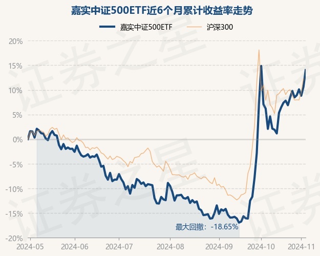 证券之星消息,11月1日,嘉实中证500ETF最新单位净值为6.1469元,累计净值为1.9258元,较前一交易日下跌1.17%。历史数据显示该基金近1个月上涨1.46%,近3个月上涨20.24%,近6个月上涨8.81%,近1年上涨7.33%。该基金近6个月的累计收益率走势如下图: