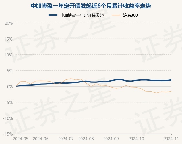 证券之星消息,11月1日,中加博盈一年定开债发起最新单位净值为1.047元,累计净值为1.07元,较前一交易日上涨0.19%。历史数据显示该基金近1个月上涨0.36%,近3个月上涨0.52%,近6个月上涨1.97%,近1年上涨4.64%。该基金近6个月的累计收益率走势如下图: