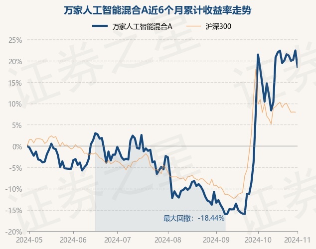 证券之星消息,11月1日,万家人工智能混合A最新单位净值为2.547元,累计净值为2.547元,较前一交易日下跌3.15%。历史数据显示该基金近1个月上涨9.76%,近3个月上涨21.76%,近6个月上涨18.56%,近1年上涨48.4%。该基金近6个月的累计收益率走势如下图: