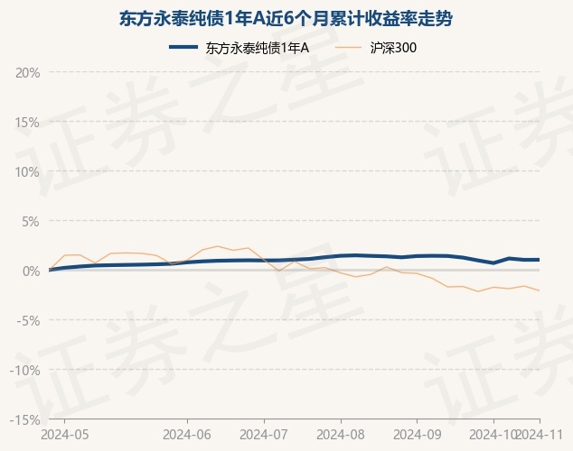 证券之星消息,11月1日,东方永泰纯债1年A最新单位净值为1.1179元,累计净值为1.199元,较前一交易日上涨0.01%。历史数据显示该基金近1个月上涨0.07%,近3个月下跌0.25%,近6个月上涨1.03%,近1年上涨5.51%。该基金近6个月的累计收益率走势如下图: