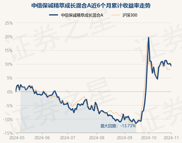 证券之星消息,11月1日,中信保诚精萃成长混合A最新单位净值为0.7424元,累计净值为3.7167元,较前一交易日下跌0.75%。历史数据显示该基金近1个月下跌1.11%,近3个月上涨14.92%,近6个月上涨9.32%,近1年上涨1.08%。该基金近6个月的累计收益率走势如下图: