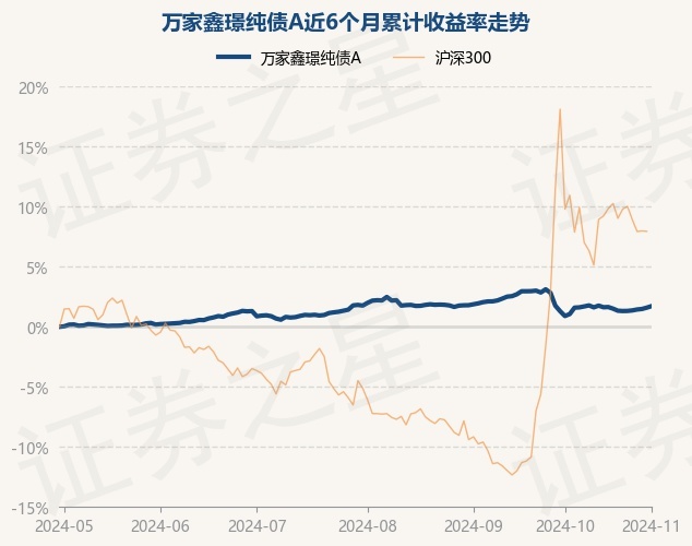 证券之星消息,11月1日,万家鑫璟纯债A最新单位净值为1.1992元,累计净值为1.3919元,较前一交易日上涨0.13%。历史数据显示该基金近1个月上涨0.42%,近3个月下跌0.27%,近6个月上涨1.72%,近1年上涨3.57%。该基金近6个月的累计收益率走势如下图: