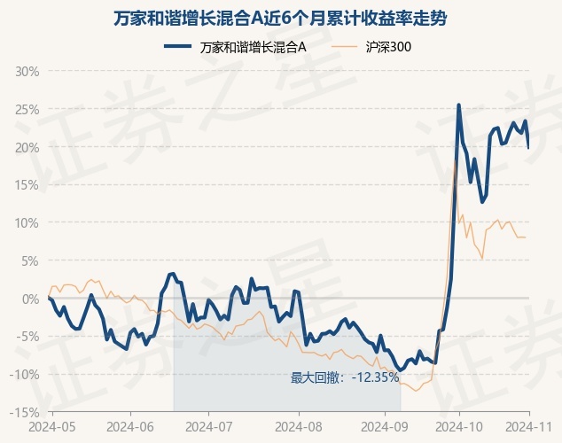 证券之星消息,11月1日,万家和谐增长混合A最新单位净值为1.8917元,累计净值为4.0983元,较前一交易日下跌2.81%。历史数据显示该基金近1个月上涨5.41%,近3个月上涨19.03%,近6个月上涨19.85%,近1年上涨44.53%。该基金近6个月的累计收益率走势如下图: