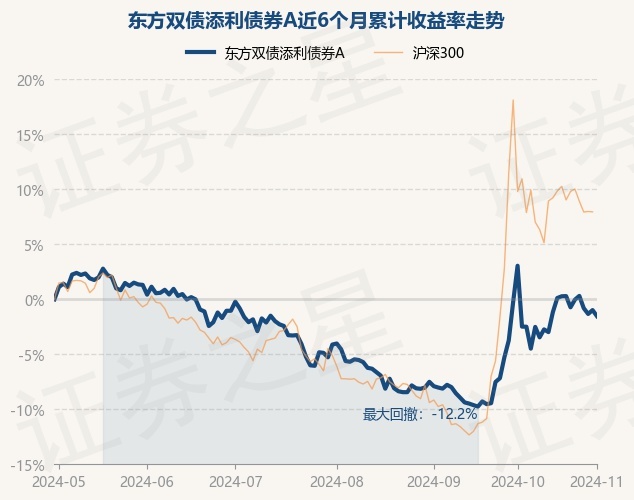 证券之星消息,11月1日,东方双债添利债券A最新单位净值为1.1217元,累计净值为1.6566元,较前一交易日下跌0.56%。历史数据显示该基金近1个月下跌1.31%,近3个月上涨2.59%,近6个月下跌1.54%,近1年下跌3.46%。该基金近6个月的累计收益率走势如下图: