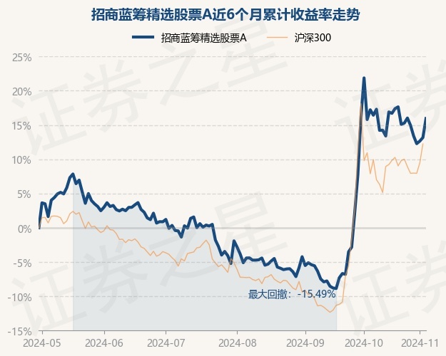证券之星消息,11月4日,招商蓝筹精选股票A最新单位净值为0.6593元,累计净值为0.6593元,较前一交易日上涨0.46%。历史数据显示该基金近1个月下跌2.61%,近3个月上涨17.67%,近6个月上涨13.17%,近1年上涨3.47%。该基金近6个月的累计收益率走势如下图: