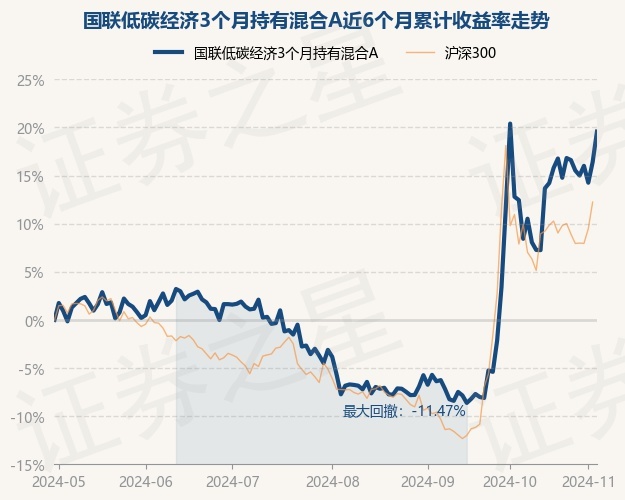 证券之星消息,11月4日,国联低碳经济3个月持有混合A最新单位净值为0.7031元,累计净值为0.7031元,较前一交易日上涨1.87%。历史数据显示该基金近1个月上涨4.19%,近3个月上涨23.37%,近6个月上涨16.39%,近1年上涨7.52%。该基金近6个月的累计收益率走势如下图: