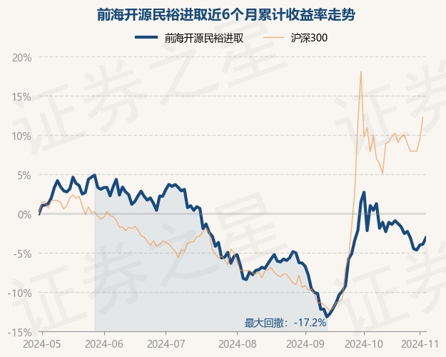 证券之星消息,11月4日,前海开源民裕进取最新单位净值为0.7178元,累计净值为0.7178元,较前一交易日上涨0.11%。历史数据显示该基金近1个月下跌5.33%,近3个月上涨2.81%,近6个月下跌3.88%,近1年上涨2.67%。该基金近6个月的累计收益率走势如下图: