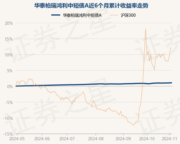 证券之星消息,11月4日,华泰柏瑞鸿利中短债A最新单位净值为1.1185元,累计净值为1.1185元,较前一交易日上涨0.03%。历史数据显示该基金近1个月上涨0.26%,近3个月上涨0.37%,近6个月上涨1.07%,近1年上涨2.45%。该基金近6个月的累计收益率走势如下图: